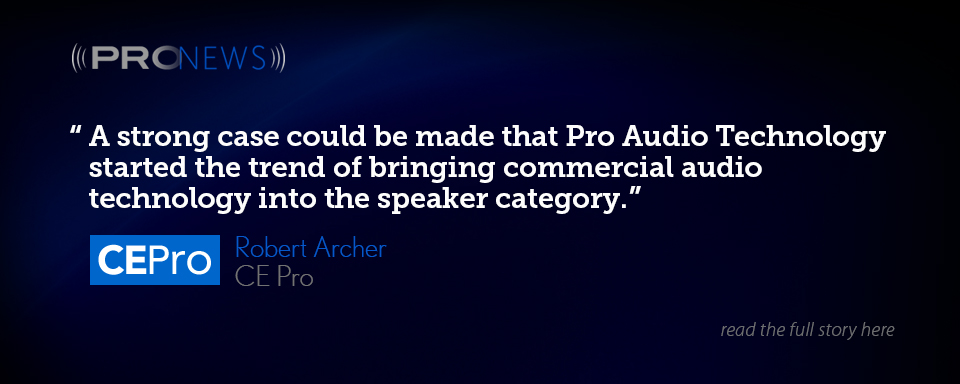 installed residential systems available. Six years later, in September 2010, we enter a new era demarcated by the introduction of a new brand mark: Pro Audio Technology. The company heritage, ownership and legal name remain unchanged; the new mark and its associated brand promise, however, make possible broader application of the company’s pioneering engineering technology and better fit our current corporate strategy. To those who already know us, the name is new; the promise to deliver truly unique high performance products is the same.